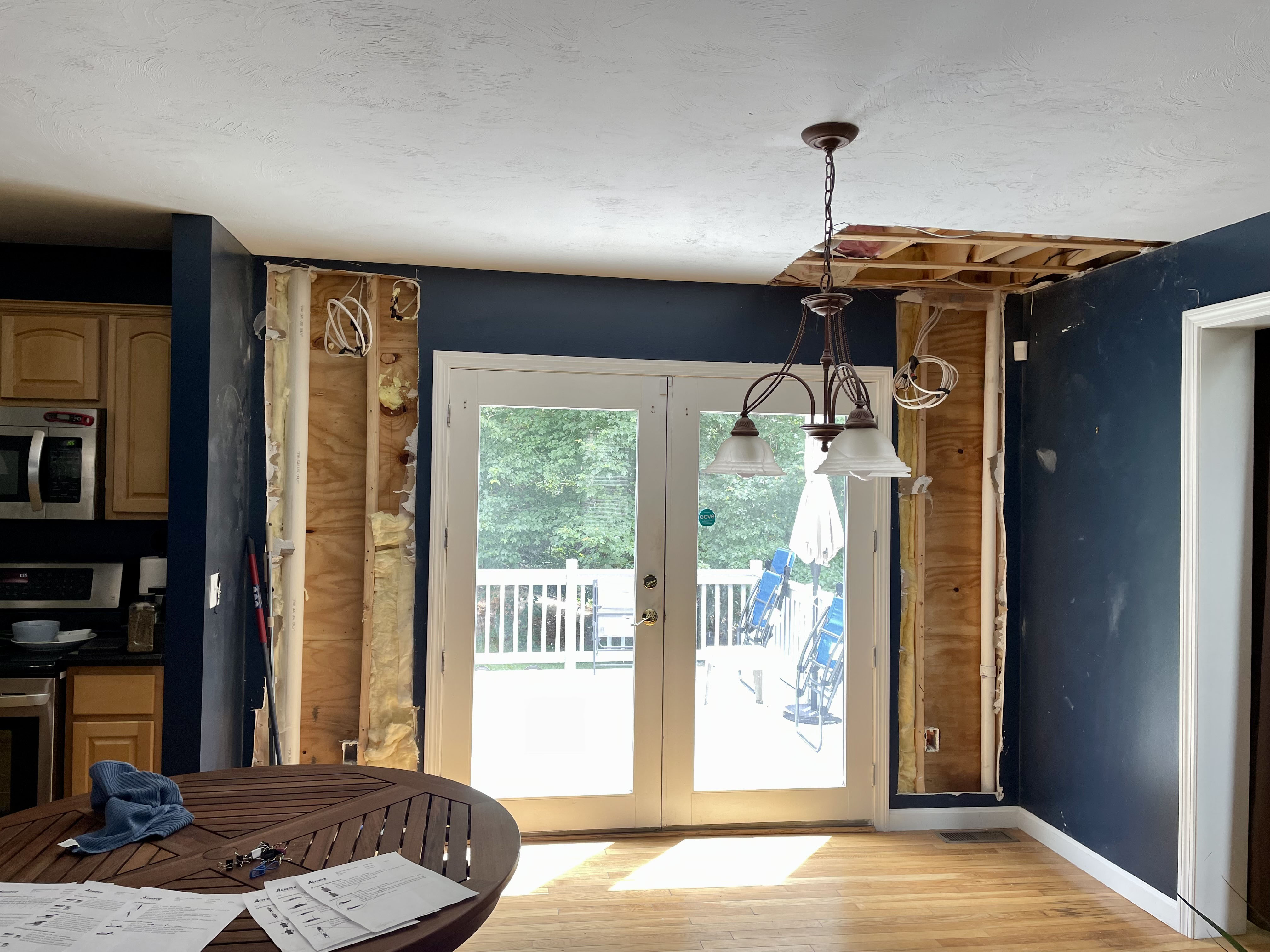As I said, my goal here was to open the wall completely up. The dark blue is going away to a brown color significantly